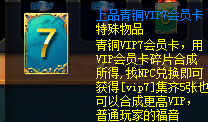 VIP7会员卡:可在魔石综合商店在线兑换VIP7等级!享有的权利跟充值的一模一样!兑换后记得小腿下!