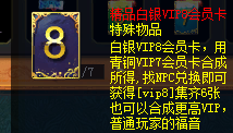 VIP8会员卡:可在魔石综合商店在线兑换VIP8等级!享有的权利跟充值的一模一样!兑换后记得小腿下!