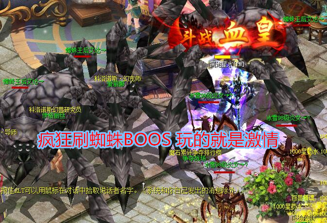 人物255级 领取全属性+58装备一套 BOSS入包50万、蜘蛛皇100万